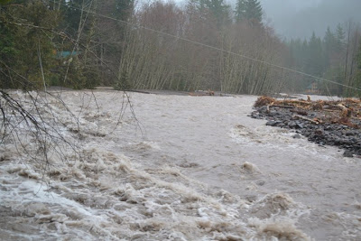 there were a bunch of houses that now have river front property, this being one of them. a tree even battle rammed itself through the bottom left hand side of the foundation (you can see about half the hole if you look closely). we also saw a house that had new "cliff front" property above the raging river, complete with "freestyle" hot tub dangling 15 feet below the house on the side of the cliff.